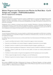 • Poste permanent, à temps non complet : 17h30 hebdomadaires à pourvoir au 1er octobre 2025, basé à la piscine du Petit Bois à St Just St Rambert