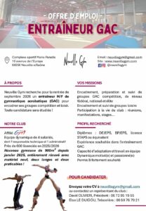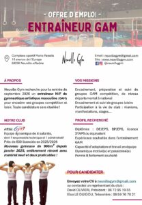 Neuville Gym recherche des entraîneurs GAC / GAF / GAM pour septembre 2026 !